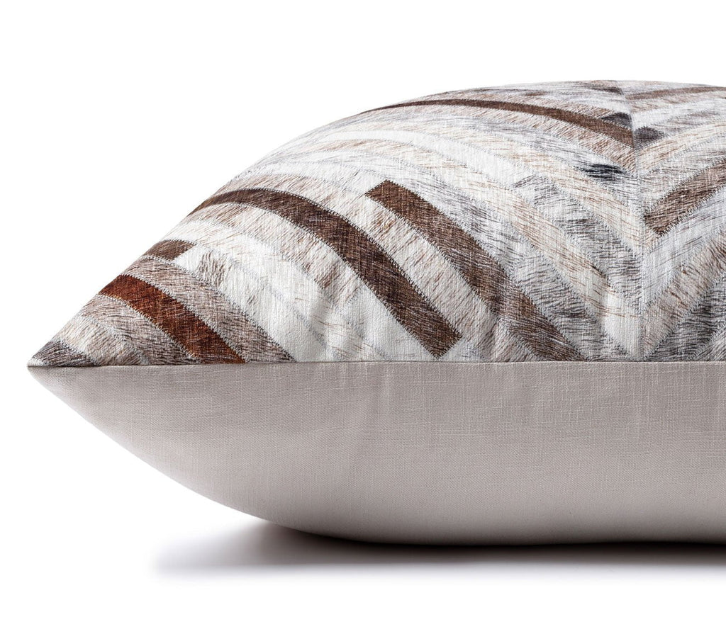 • Handcrafted cover embroidered with thick, textured threads in an abstract geometric pattern.